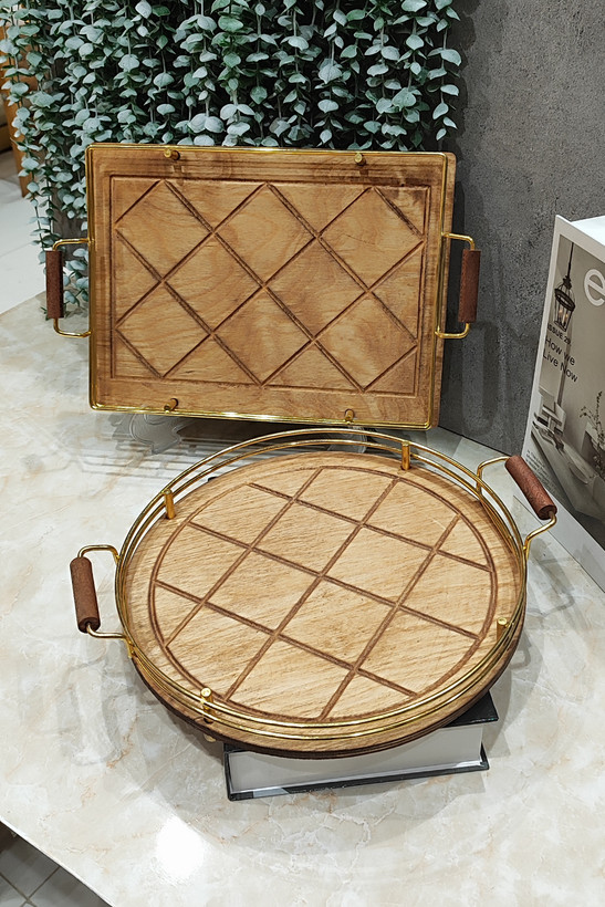 سینی چوبی دور فلز ،قابل شستشو ،فلز به کفی پیچ شده و کاملا محکم