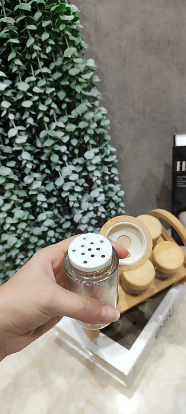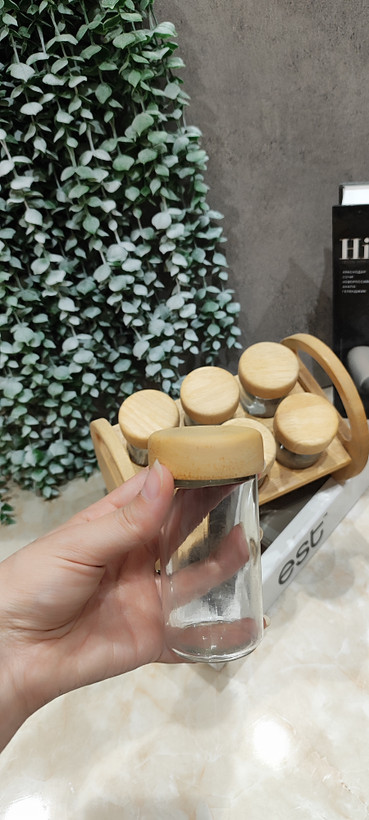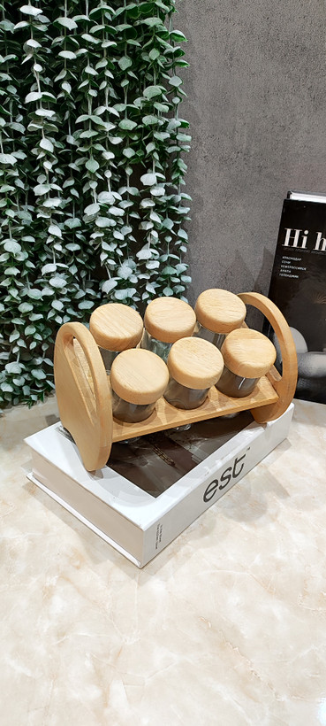 جا ادویه مدل کج از جنس چوب بامبو و شیشه