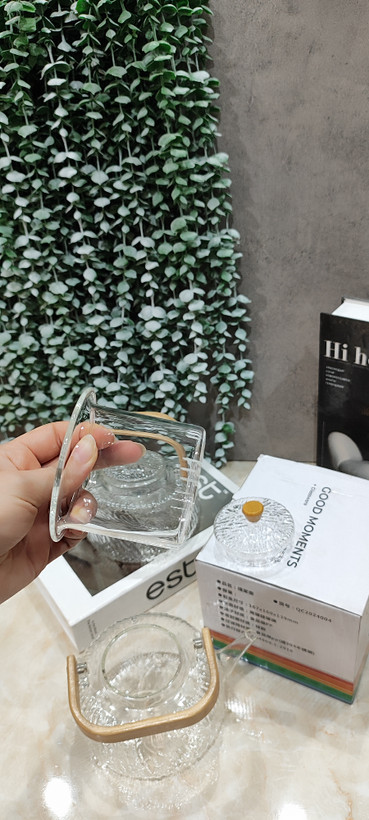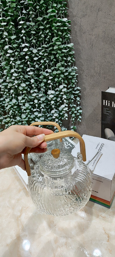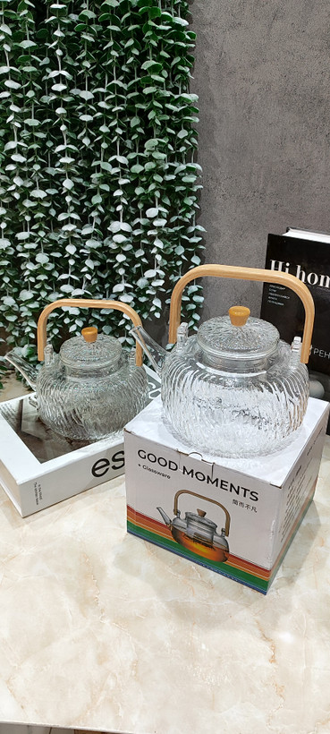 قوری یک لیتری (پیرکس نشکن)دسته ودستگیره درب چوب بامبو