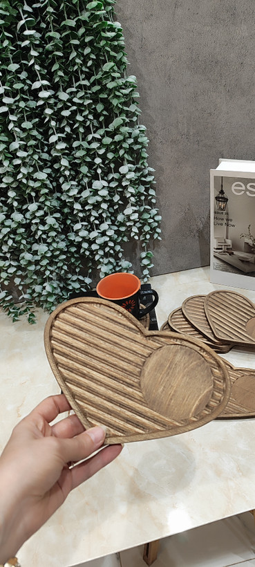 زیر لیوانی چوبی طرح قلب سه بعدی